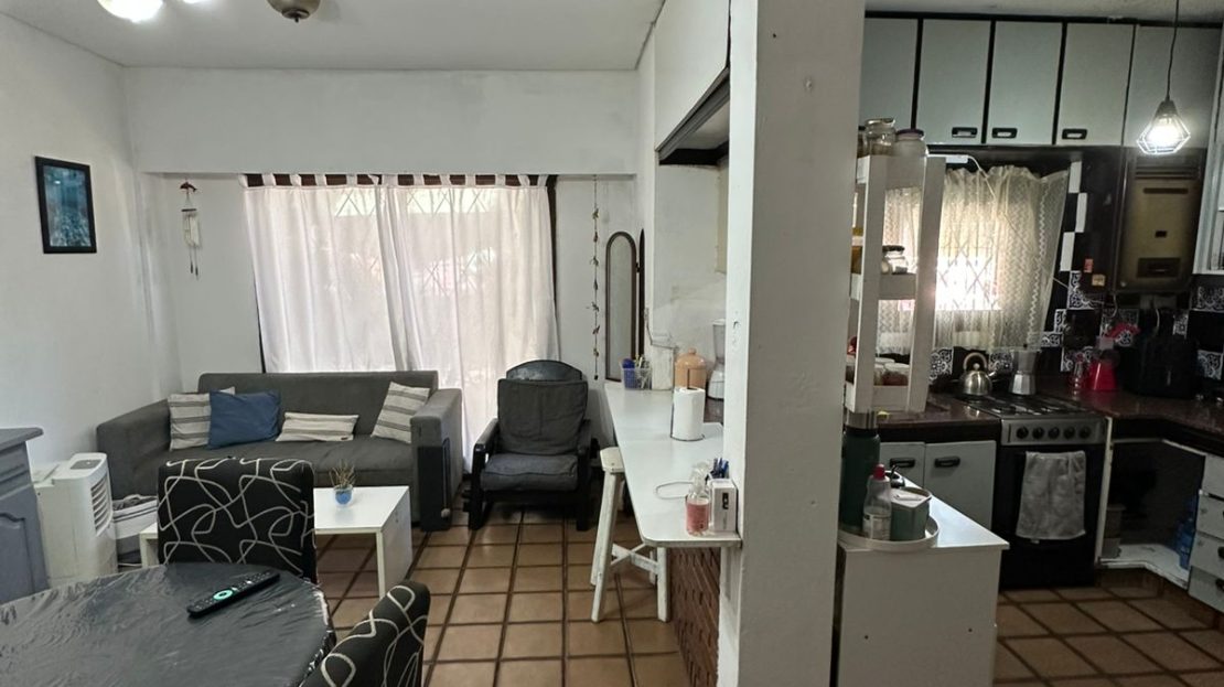 PB: Living-comedor amplio con cocina integrada completa y un baño, 1 dormitorio con posiblidad de unificar al living, Patio semi cubierto con salida a una habitacion amplia y una cocina comoda a refaccionar con un baño completo. PA: 1 baño completo y 4 Habitaciones la principal con baño en suite. Terraza propia con parrilla y lavadero. Sin expensas.
