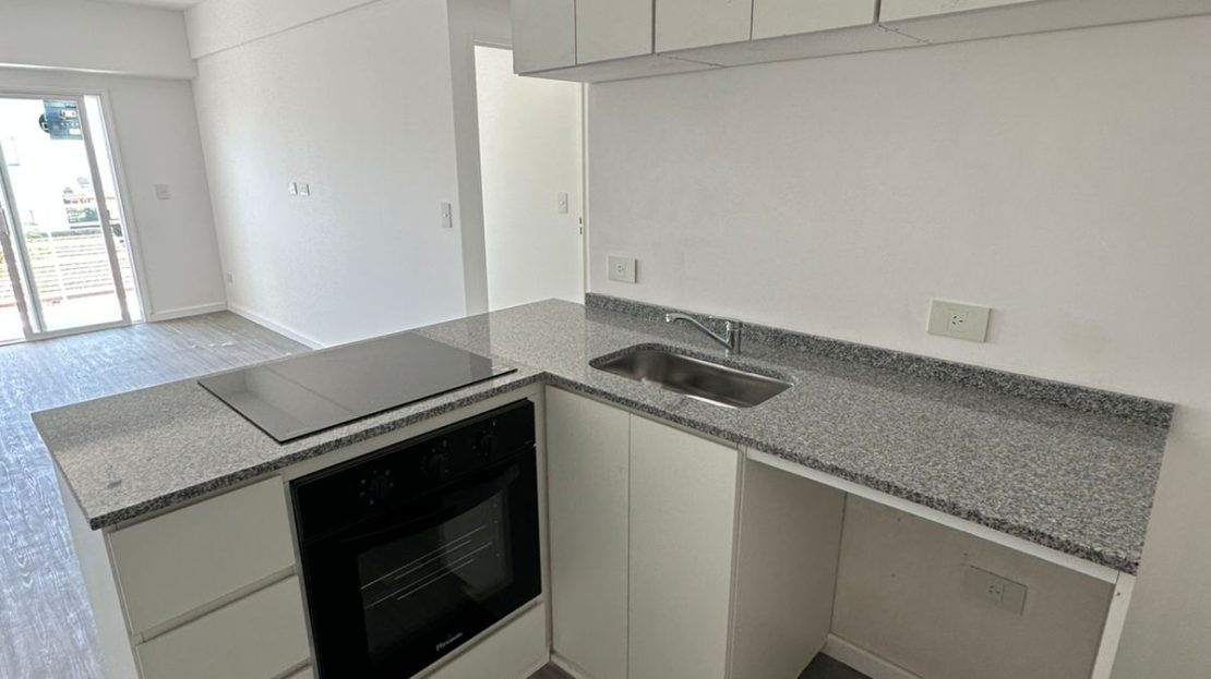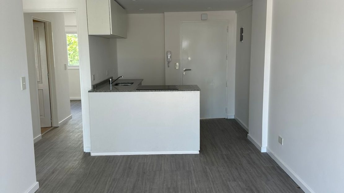 Departamento 3 ambientes a estrenar ubicado en un 3° piso por ascensor al contra frente. Se ingresa a un Estar comedor 7,42 x 3 con pisos flotantes Cocina integrada electrica con muebles bajos mesada y alacenas y conexion para lavarropas , balcon corrido, 2 baños completos, uno de ellos en suite, 2 dormitorios 3 x 3 sin placard. Sup Cub: 58m2 Orientación Este muy luminoso.
